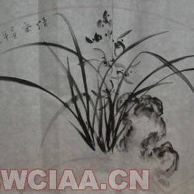 三元的兰花,不为一家所固,称得上万应灵物。作者在一副《破盆兰花》作品中,画面表现得极为精妙,他以逆入用笔作顿势,转多于折,脱尽常人画兰一味缠绵,看他的作品兰叶少,花蕊独昂,兰叶在风中摇曳飘舞,显得纵横有气,虽画的满目是兰,但形态各异。无论是垂于湖石之畔,或招展于平地,三元把佛家哲理禅机与画面非常完美的融合起来,含道映物,澄怀味象。兰花在三元笔下随手成形,摆脱了拘泥的线条,用笔线性灵动,游形于虚实、真幻之间。近年来三元画兰在江南声誉远播。